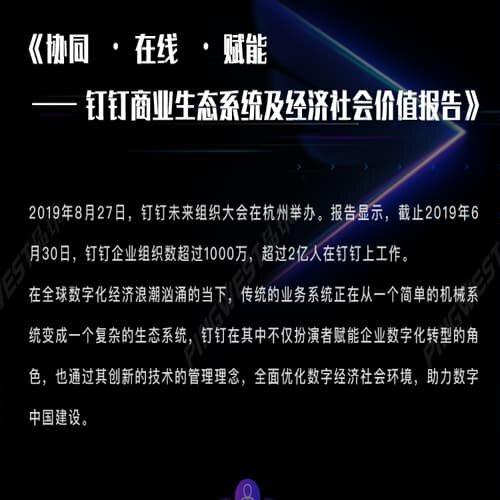 发布者:品玩 2019/08/278月27日,中国信息通信研究院与阿里研究院联合发布了《协同·在线·赋能——钉钉商业生态系统及经济社会价值报告》。报告指出,钉钉作为数字化转型2.0时代的一个平台级的引领者和推动者,实现了企业内部跨部门高效协同。